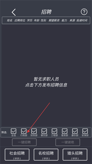 4、在招聘界面,选择筛选条件,发布招聘信息,招募合适员工。