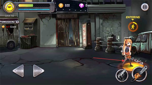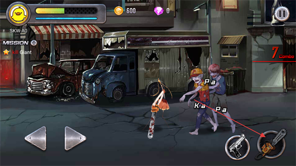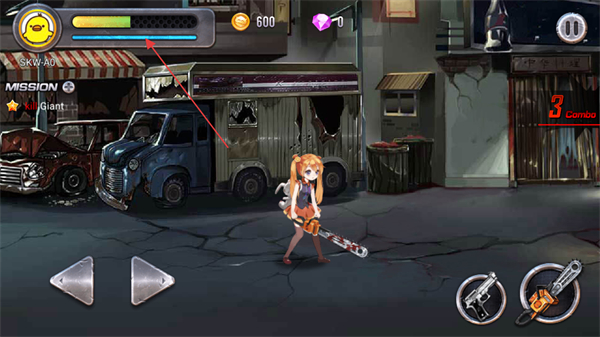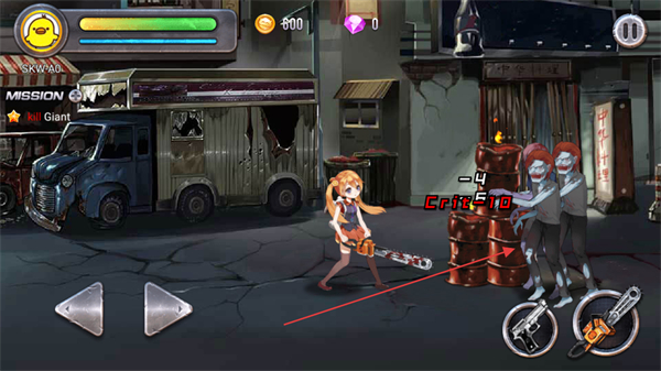 1、操控女孩使用电锯攻击僵尸,造成伤害,击败敌人。