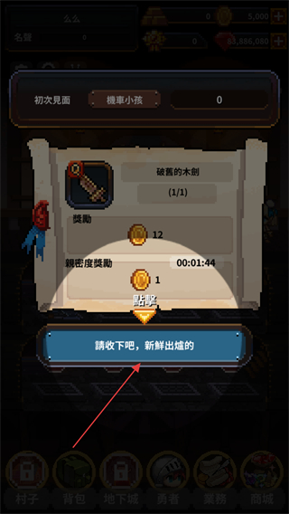 3、领取被棄的木制武器奖励,点击請收下吧,新鮮出爐的获取奖励。
