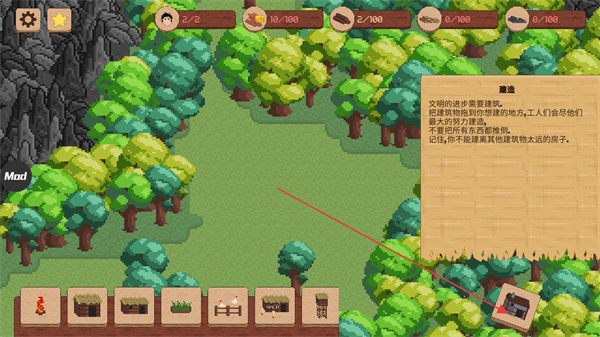 1、了解建造功能,通过建造建筑推动文明进步,工人会处理建造物附近资源。