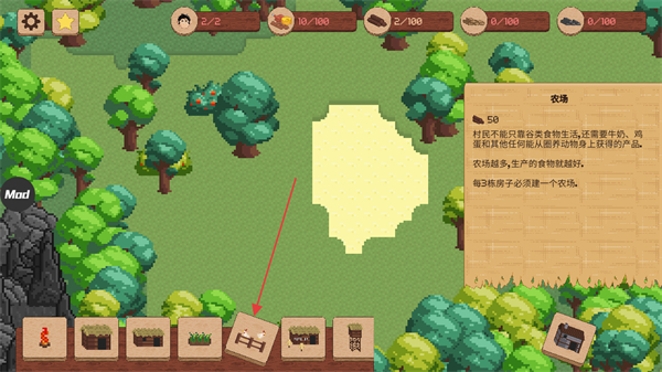 2、点击建造农场,发展农业生产,获取食物资源,每个新移民需建一个农场。