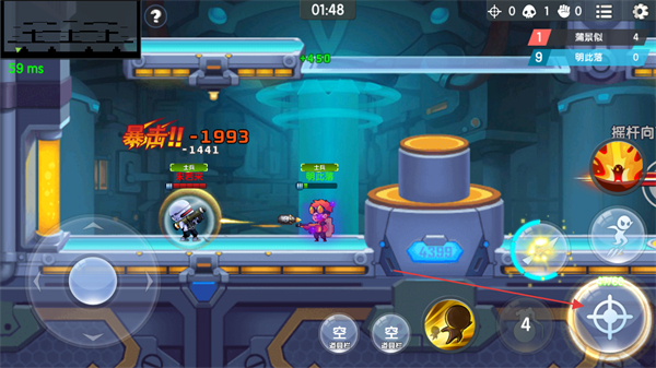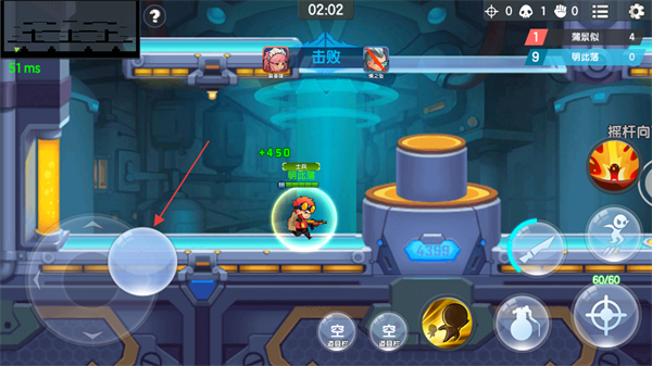 2、通过左侧摇杆控制角色移动,在地图中走位躲避敌人攻击。