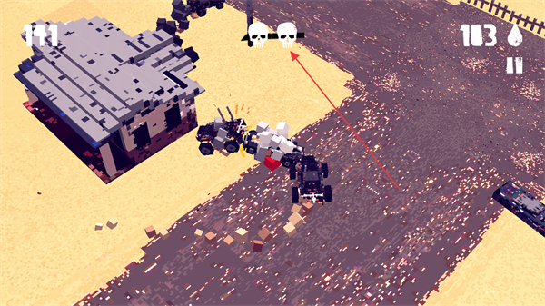 3、攻击沿途敌方车辆和障碍物,获取资源,同时注意躲避攻击,保障车辆生存。
