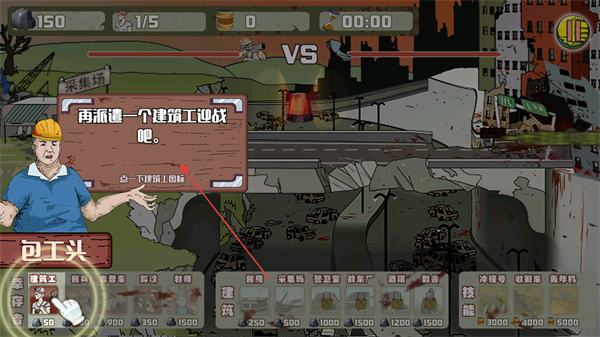 4、观察VS进度条,通过建筑工战斗推进进度,争取胜利。