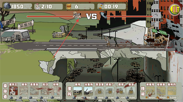 3、持续派遣建筑工,推进战线,消灭更多僵尸。