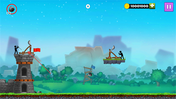 火柴人投石车无限金币版是一款以火柴人为主题的策略塔防对战作品,核心玩法围绕火柴人防御敌人攻城展开,通过操控弹射器向对手投掷石块,破坏对方的军事设施与攻城塔来阻挡进攻,操作方式简单,只需点击屏幕拉动弹射器并选择合适张力,释放后即可将炮弹射向敌人,若成功击杀敌人,其脚下的平台会直接碎裂,整体玩法兼具策略规划与操作乐趣。