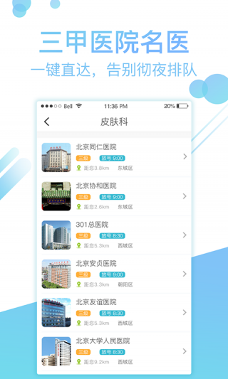 3、可为用户提供北京160多家医院中每家医院的详细信息,提供更加专业的挂号操作支持你。