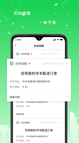 2、华丰配送实时查看快递订单和结算数据,直接查看信息,自动推送优质骑手服务。