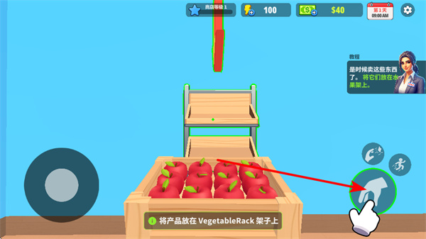 4、按照提示操作互动按钮,这是完成商品上架与经营操作的基础操作,通过互动可精准将产品放置到货架,确保运营流程顺畅。
