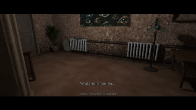 4.进入房间后,出现“What a nightmare I had..”的剧情文字,点击屏幕继续游戏。
