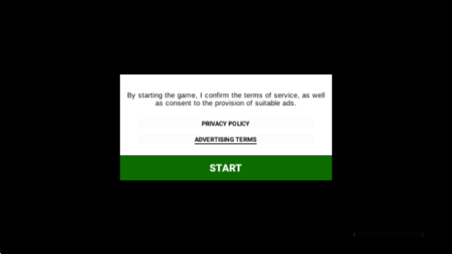 1.首先看到包含“By starting the game,I confirm the terms of service,as well as consent to the provision of suitable ads.”的界面,点击“START”按钮开始游戏。