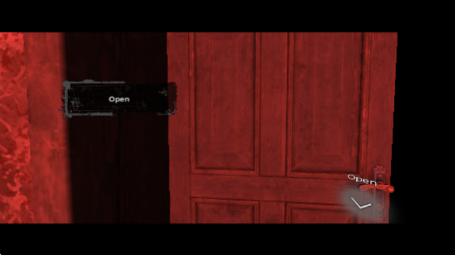3.遇到带有“Open”提示的红色门,点击门把手区域的“Open”提示来打开门。