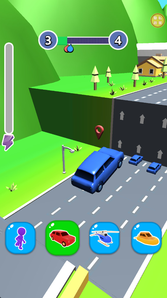 2.上划跳跃触发二段空中变形,左右滑动切换赛道层,最多3层立体赛道。