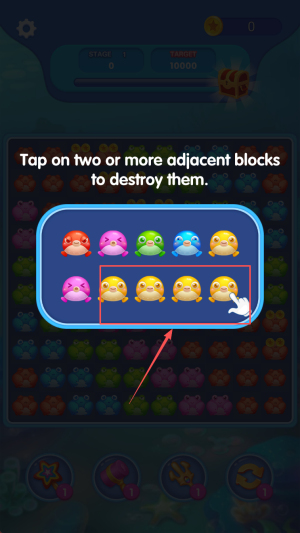 1、开启消除准备:进入游戏明确 “消除方块、推进剧情” 目标,熟悉方块匹配规则与气泡爆炸机制,了解当前关卡任务。