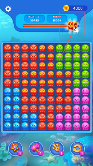 2、精准匹配消除:在关卡中寻找相同图案的方块,点击完成消除,触发气泡爆炸特效时,利用特效清除更多方块,快速推进进度。