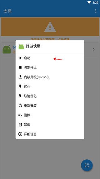 3、然后就可以在太极里启动,你可以在里面任意修改