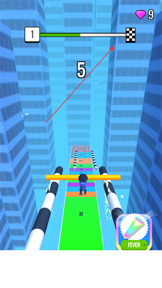3、持续奔跑,通过不同的跑道区域,挑战更高的关卡数字如2、5等。