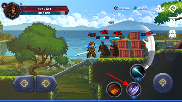 2、战斗时,点击紫色技能按钮,这是释放范围技能的核心操作,使用后可对多个敌人造成伤害,快速清理战场。