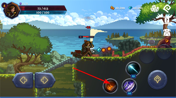 3、面对强力敌人时,点击橙色技能按钮,这是释放高伤害技能的关键步骤,能有效削减敌人血量,提升战斗效率。