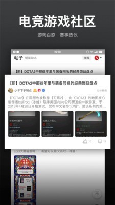1、软件专为喜欢电竞和PC游戏的玩家打造。无论是DOTA还是LOL,都可以在这里获得第一手资料。