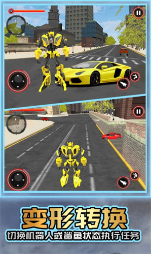 2、机器人还具有变形功能,玩家可以在超级英雄战争机器人和飞龙之间完美转换。