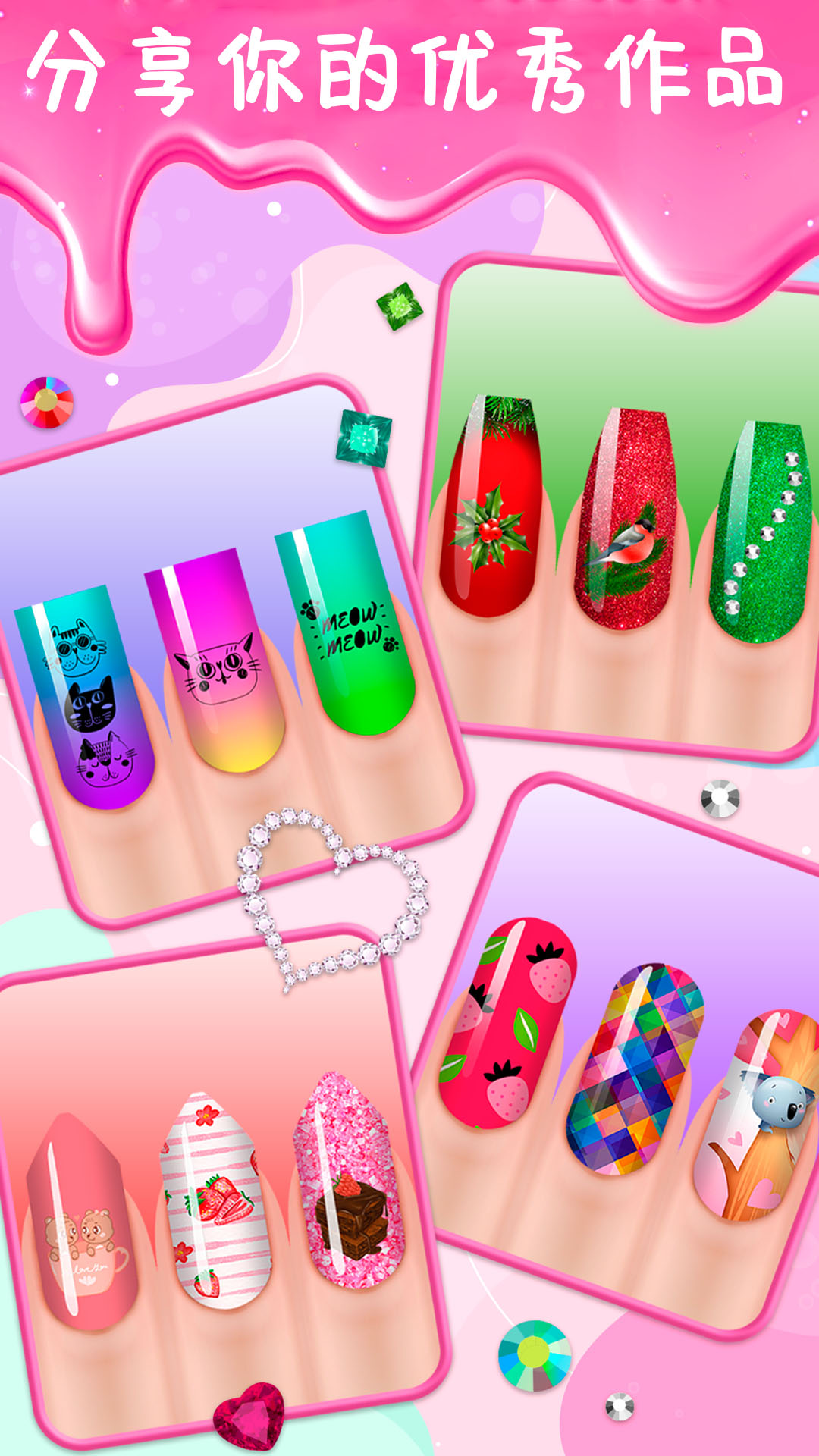 1、在这里,你可以用你最喜欢的美甲设计,美丽的图片,美丽的场景和美丽的音乐可以进行创造。