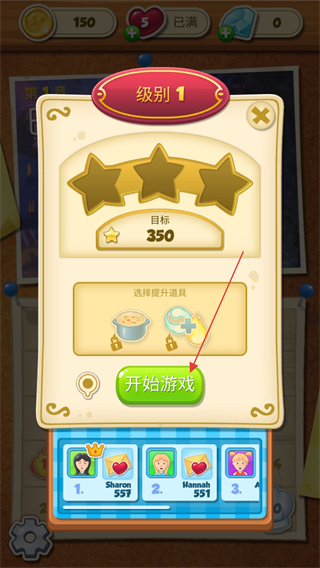 1、点击开始游戏进入级别1,目标分数350,可选择升级道具助力。