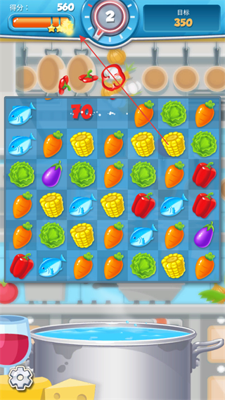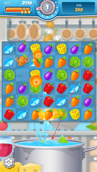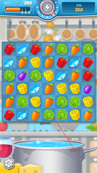 4、消除的元素会落入锅中,持续消除积累高分,完成目标分数即可通关。