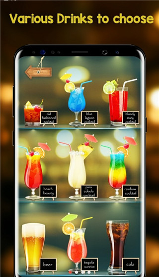 饮料模拟器是一款玩法轻松的休闲模拟作品,点击进入即可让手机界面充满各类饮料,带来新奇有趣的视觉体验,采用动漫卡通画风,搭配明亮醒目的色彩,营造出如同置身夏日海滩的清爽氛围,提供多种饮品选择,可自由添加冰块、水果等配料进行调制,还能更换不同背景场景,既能体验成为饮料调制师的乐趣,也能拿起手机向朋友发起趣味恶作剧。