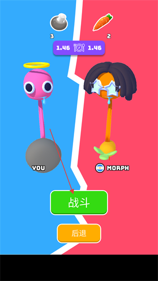 1、对比双方体重和道具,点击战斗按钮,开启与对手的体重比拼。