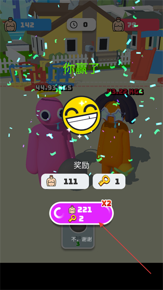 4、成功击败对手后,领取奖励,积累资源,用于后续的体重提升和战斗。