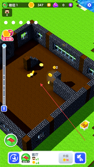 1、在楼层1收集金币,积累资源用于建筑升级。