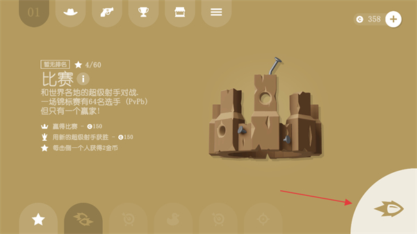 1、进入游戏界面,点击右下角白色子弹图标进入关卡。