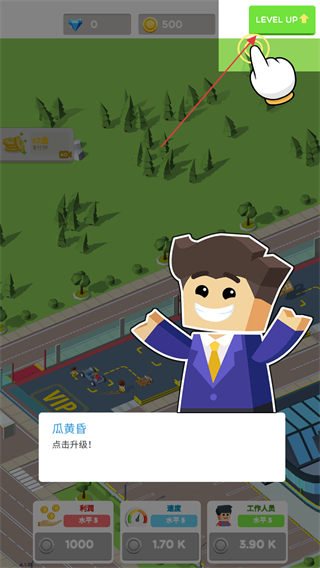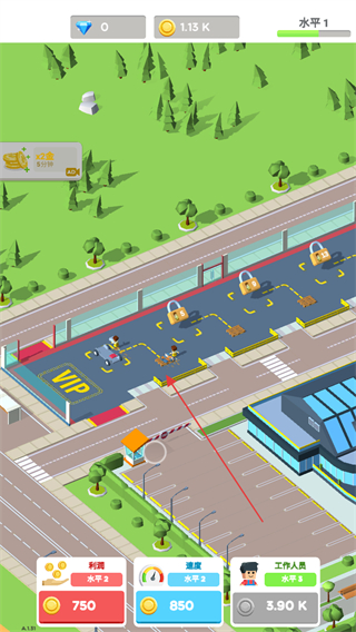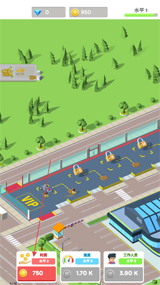 1、在水平1的VIP区域开展造车业务,收集初始资源,解锁施工区域。