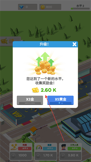 4、升级到水平2后,收集奖励金币,继续拓展造车业务,持续通关。