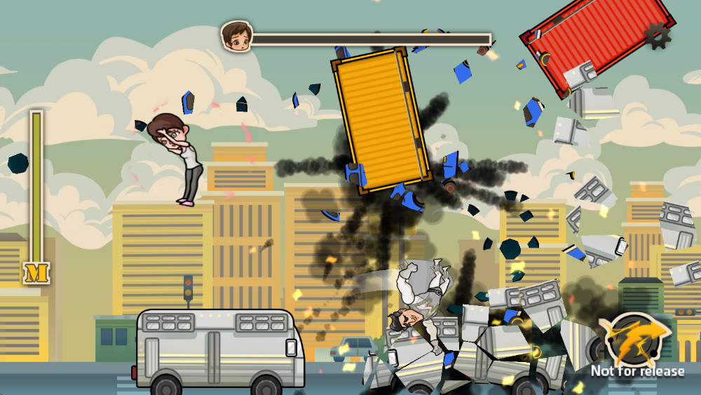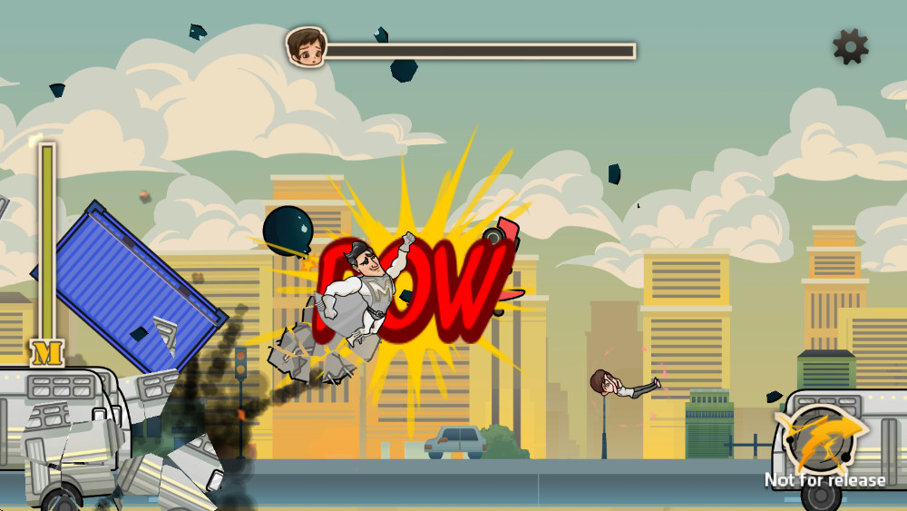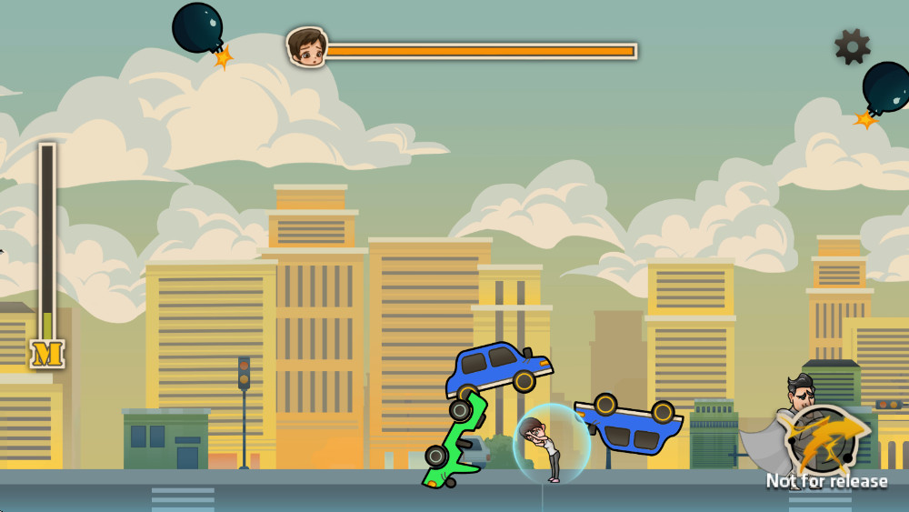 4.坚持一段时间后就会进入boss战,滑动屏幕可以移动角色躲避高楼,击中boss可以减少血量,当血量为零时就可以通关。
