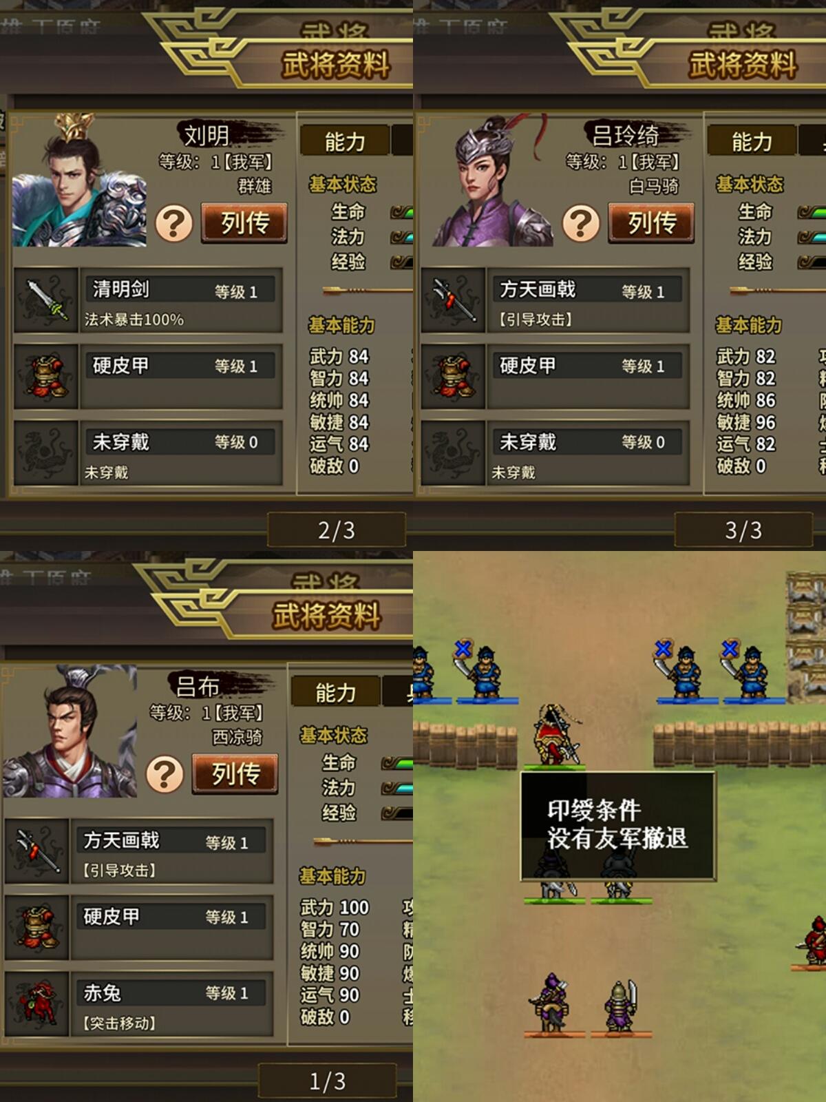 胜利条件:全灭敌军,吕布可以习得特技<严防>、或者坚持25回合(休闲模式是20回合)