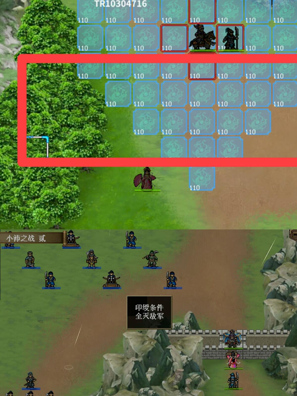 2、吕布、张辽如上图红框后敌方兵营左侧敌方回合出现敌军大部队(注意袁绍别死了,其他友军没关系)如果袁绍被击退,全军降士气。