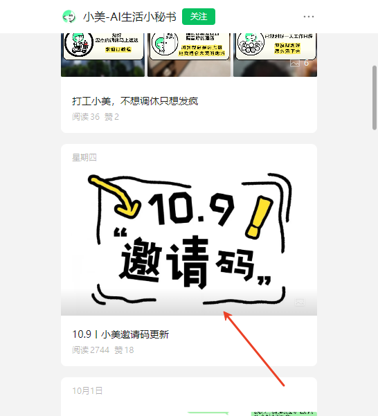 2.在公众号文章内,官方会不定时发放邀请码,