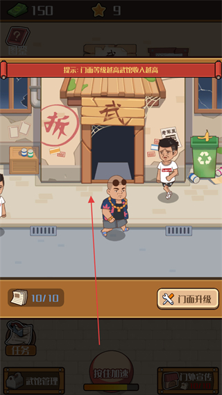 用赚取的学费升级武馆设施、扩大场地,从小型拳馆逐步升级为大型武馆,解锁更多经营功能与弟子席位。