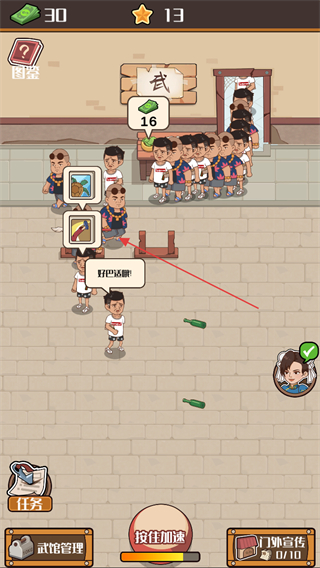 1、在武馆内让学员进行训练,点击训练区域可收集金币,积累武馆运营资金。