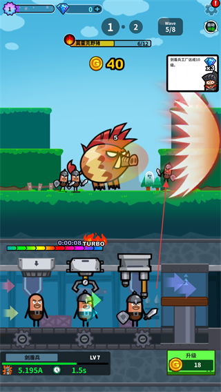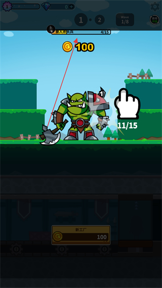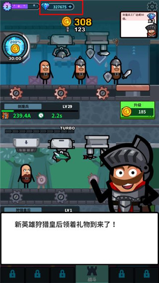 4、升级英雄工厂的设施,增强英雄属性,高效击杀怪物,积累大量金币,不断拓展英雄阵容与工厂实力。