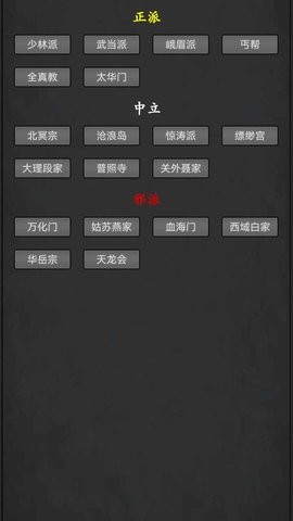 有数十个武林门派可以加入,如果你的实力够强的话,还能成为本门派的掌门。