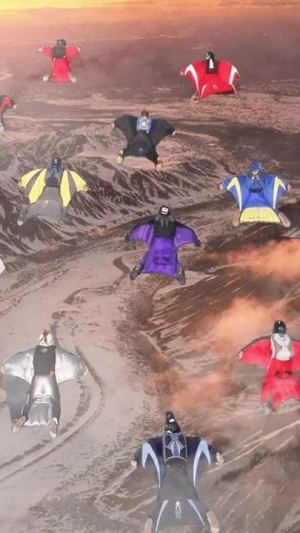2、登高空开滑翔:来到万米高空起点,张开翼装开始滑翔,感受从高空往下飞的速度与自由,欣赏蓝天景色。