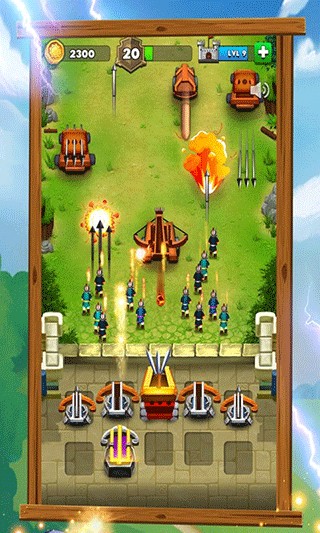 1、部署防御武器如弩炮,拦截敌方进攻单位。