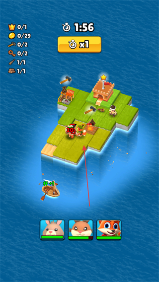 1、在岛屿上指挥动物如狐狸行动,清理区域,收集资源。