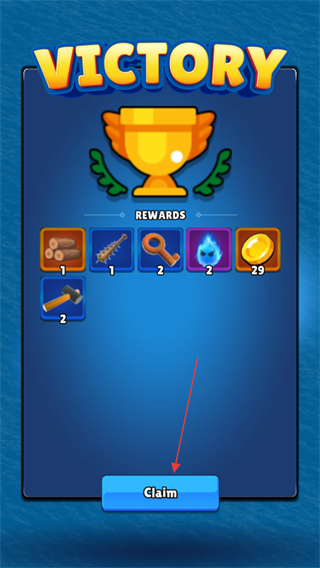 4、通关后点击Claim领取奖励,获取木材、金币等资源,继续岛屿探索。