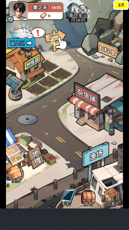 6.出门探索,获取物资和资金。