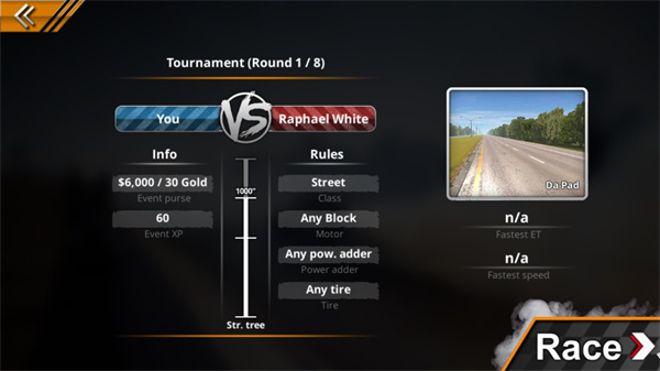 5.进入之后还要选择一个地图进行挑战,选择完点击race。