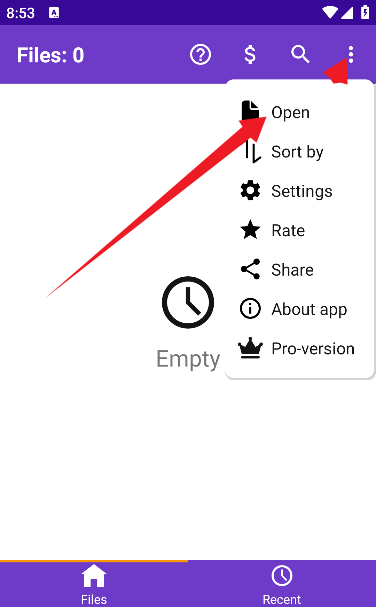 2、进入到软件首页,如图所示,点击右上角的【···】按钮可以弹出一个下拉框,然后点击【open】可以打开本地文件目录